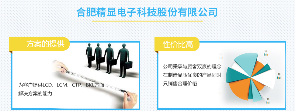 ?合肥精顯電子科技股份有限公司成立于2012年,由液晶行業(yè)知名企業(yè)廈門精顯電子有限公司投資建設,是一家研發(fā)、生產、銷售高品質液晶屏(LCD)、液晶顯示模塊(LCM)、背光(LED)、電容式觸摸屏(CTP)等節(jié)能環(huán)保產品并能為顧客提供解決方案的高新科技企業(yè)。 ?公司占地55畝,擁有建筑面積超過20000平米和潔凈廠房5400平米。 ?公司擁有一個超過15年以上LCD行業(yè)運營制造經驗的團隊。 ?公司獲得研發(fā)專利20余項。 ?公司通過C-TPAT認證,ISO9001:2008認證,產品通過了ROHS、REACH。 ?我們產品廣泛應用于智能儀表(水表,電表,氣表)、家電、儀器儀表、計量器械、文教 器具、UPS電源、智能手機機、平板電腦等電子產品的顯示和控制。目前我們已樹立了良好的品牌形象,并與眾多公司(如GE, Ja...